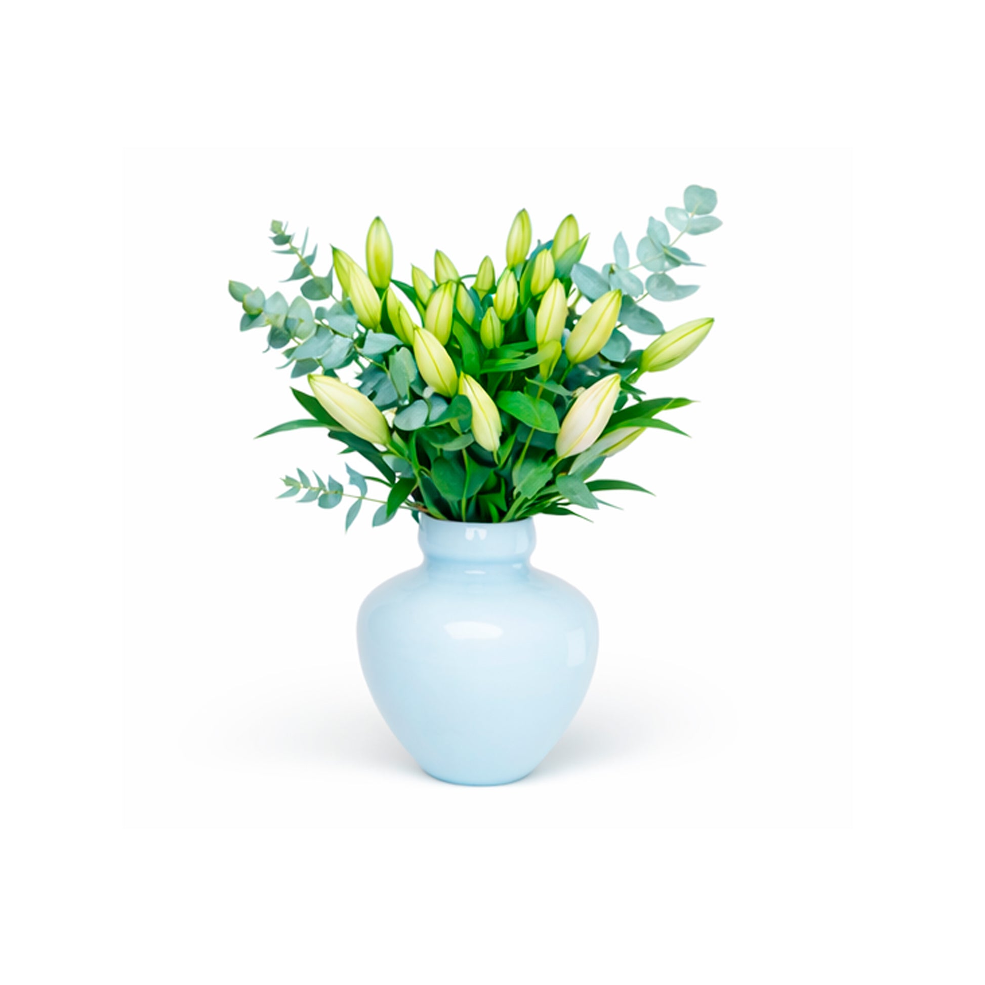 Vi kan derfor ikke garanterer at buketter indeholder de viste eller beskrevne blomster, men vi garanterer at buketten har en tilsvarende værdi.